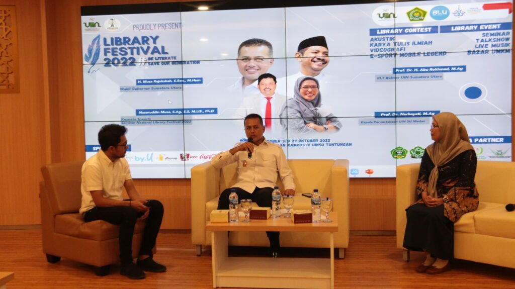 Kegiatan yang diselenggarakan selama dua hari ini, yaitu tanggal 26 dan 27 Oktober 2022, digagas secara bersama oleh mahasiswa, dosen Ilmu Perpustakaan bersama dengan pimpinan dan pengelola perpustakaan. Atas kerja keras mahasiswa ilmu Perpustakaan, kegiatan ini mendapatkan sponsor dari beberapa lembaga dan unit-unit UMKM serta bisnis. Adapun lomba-lomba yang dilaksanakan meliputi lomba videografi, Mobil Legend, dan karya tulis ilmiah. Pada kegiatan Library Festival 2022 ini juga diselenggarakan seminar dengan narasumber Nazaruddin Musa, MLIS., Ph.D. dari UIN Ar-Raniry Banda Aceh dan berlaku sebagai moderator adalah Franindya Purwaningtyas, MA., Sekretaris Program Studi Ilmu Perpustakaan. Pada hari kedua, diselenggarakan Talkshow dengan narasumber Musa Rajekhsyah, M.Hum., Wakil Gubernur Sumatera Utara, yang dimoderatori oleh Abdi Mubarak Syam, M.Hum., dosen program studi Ilmu Perpustakaan. Sementara itu dosen-dosen program studi Ilmu Perpustakaan lainnya berperan sebagai juri Lomba Karya Tulis Ilmiah yaitu Dra. Retno Sayekti, MLIS. dan Dr. Abdul Karim, MA, Ketua Program Studi, dan lomba videografi yaitu Muslih Faturrahman, MA.