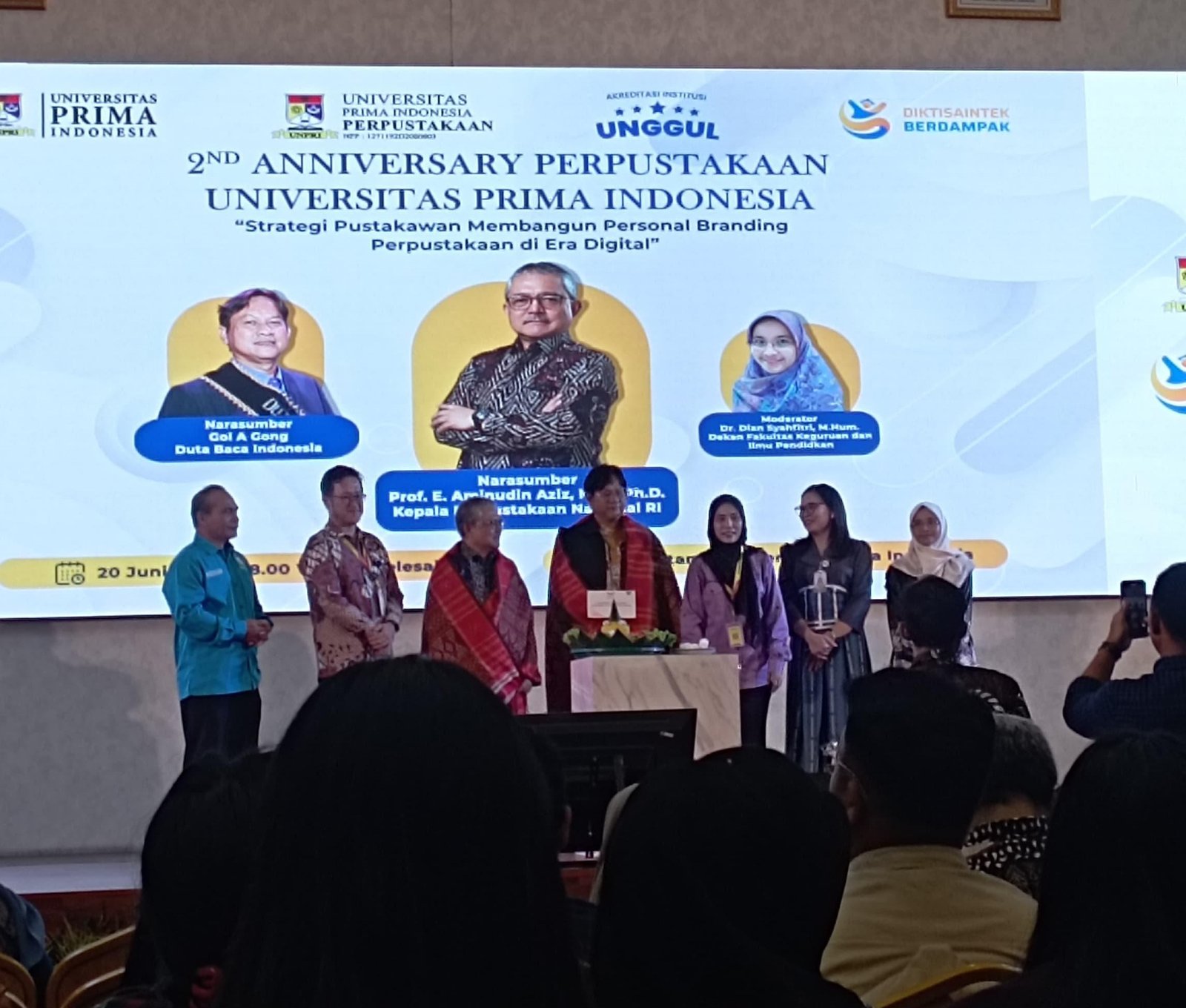 Medan, 20 Juni 2025 – Sebanyak 10 orang mahasiswa Program Studi Ilmu Perpustakaan Universitas Islam Negeri Sumatera Utara (UINSU) turut hadir dalam seminar nasional bertajuk “Strategi Pustakawan Membangun Personal Branding Perpustakaan di Era Digital”. Kegiatan ini diselenggarakan dalam rangka 2nd Anniversary Perpustakaan Universitas Prima Indonesia (UNPRI) dan berlangsung di Hall Utama Universitas Prima Indonesia, Medan.